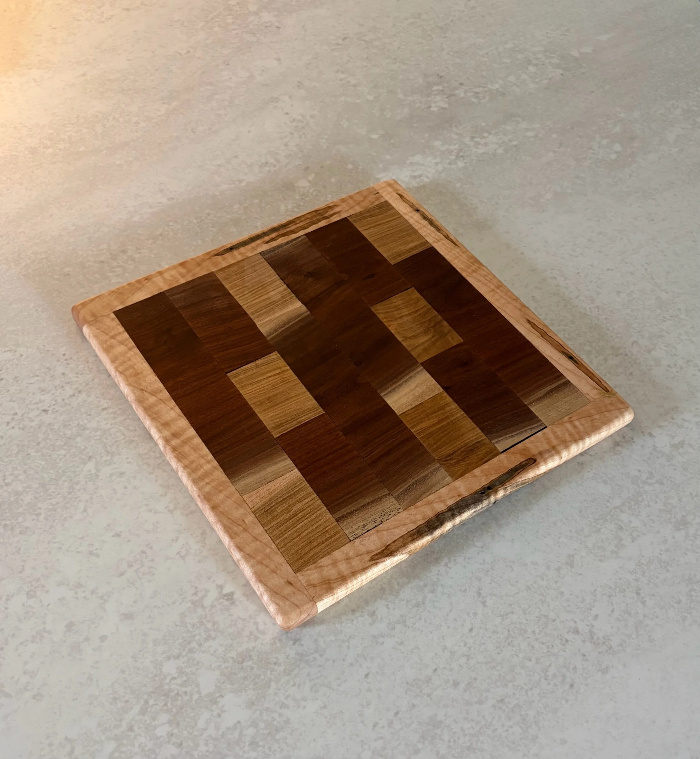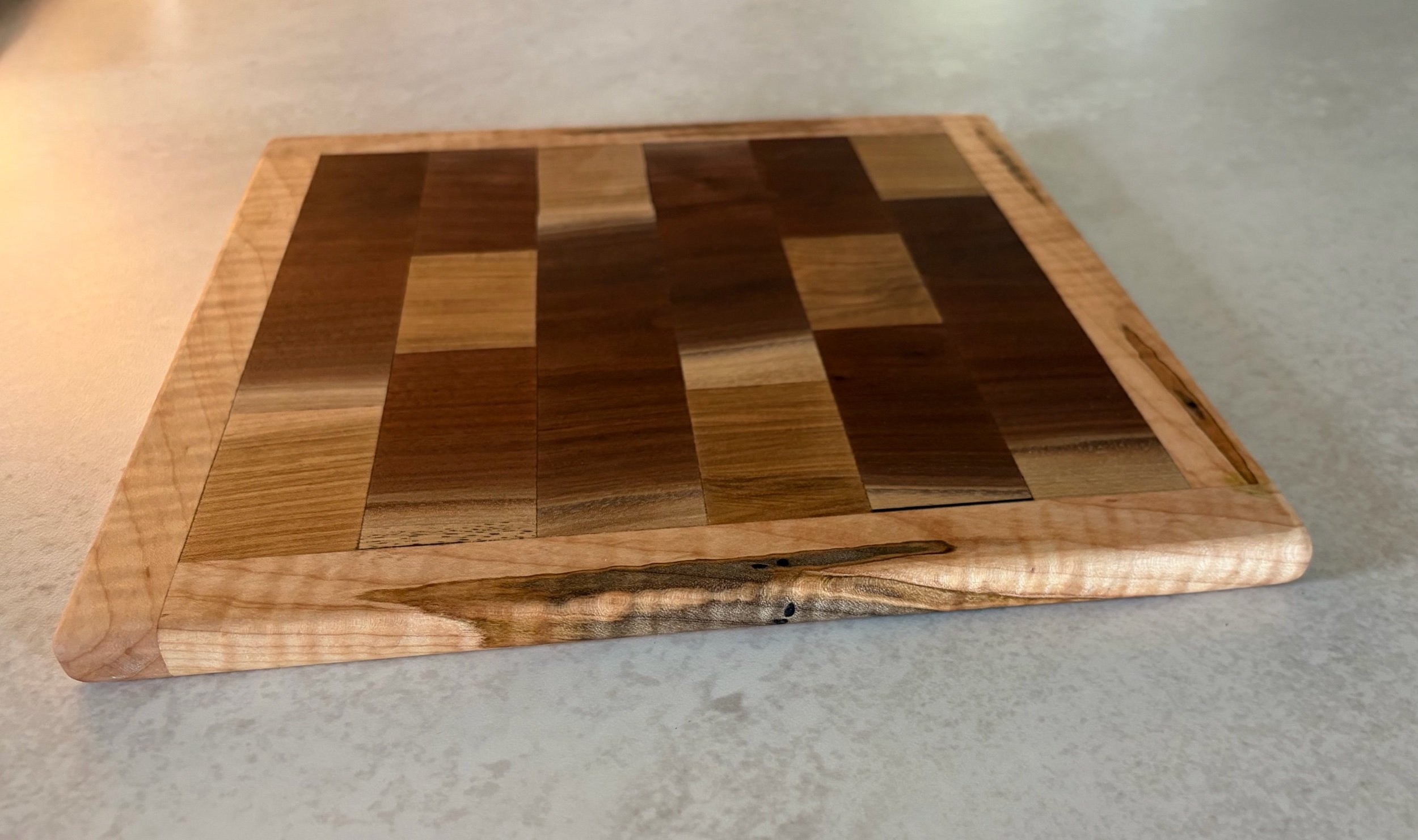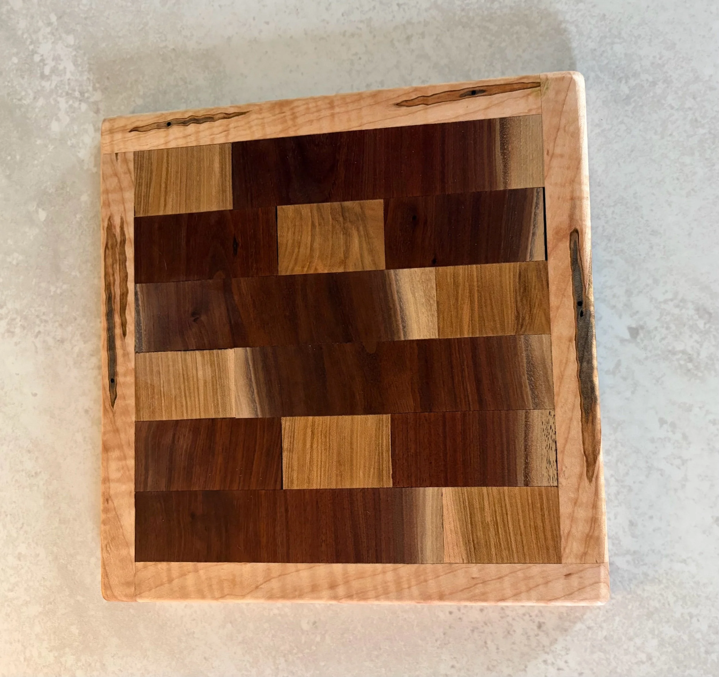 Shop › Walnut and maple cutting board with boarder Image 1 of 3 Image 2 of 3 Image 3 of 3 Walnut and maple cutting board with boarder $30.00 Walnut and two different kinds of maple wooden cutting baord Add To Cart Added! Walnut and two different kinds of maple wooden cutting baord